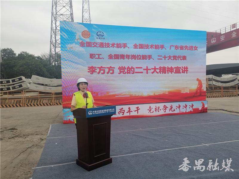 宣讲培训上,中铁隧道局琶洲支线项目的产业工人们献上了诗朗诵《隧道工人奏鸣曲》、合唱《咱们工人有力量》,以视频连线的形式观看了中铁隧道局琶洲支线项目4000米节点突破仪式,分享了全国五一劳动奖章、全国技术能手、第25届中国青年五四奖章、全国青年岗位能手、大国工匠获得者,中铁隧道局集团职工母永奇的故事,全国交通技术能手、全国技术能手、广东省先进女职工、全国青年岗位能手、党的二十大代表,广州地铁集团运营事业总部高级客车司机李方方应邀作党的二十大精神宣讲。