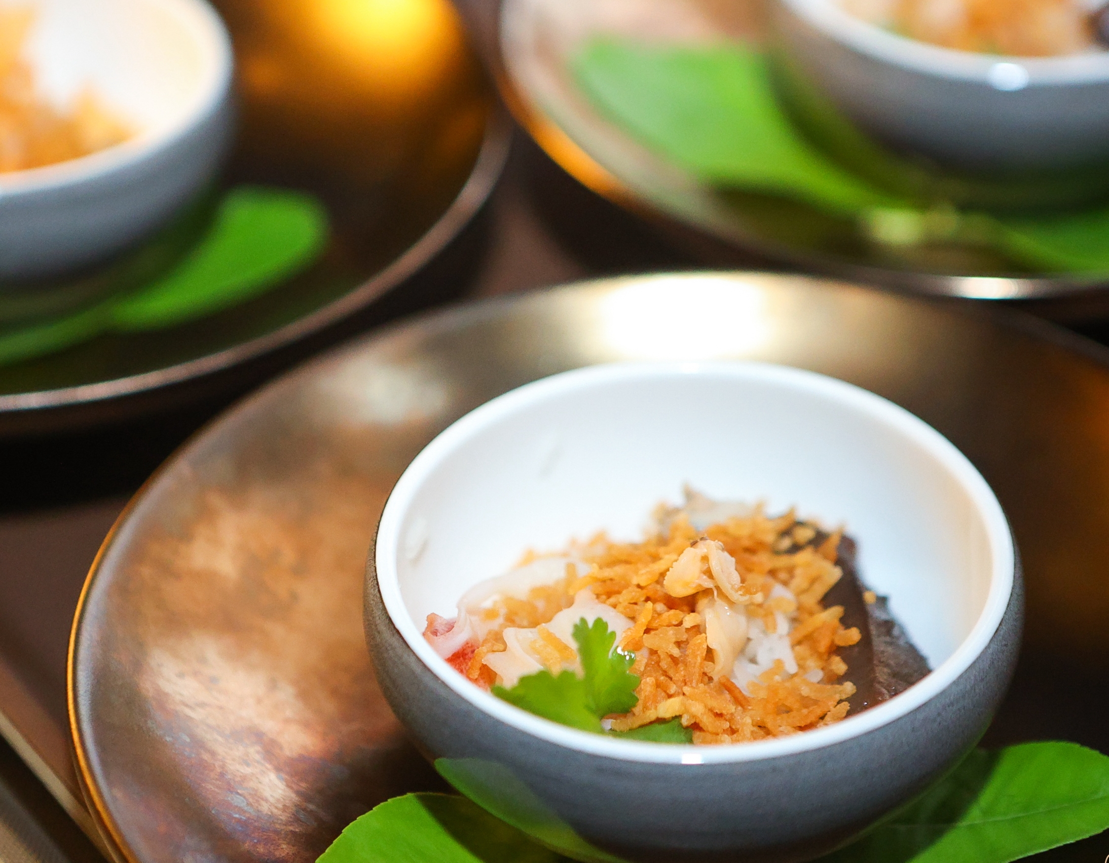 “万物生长”,这不正是春天的面貌吗?苗儿从湿润的土地里冒出,露珠还在其上打转儿,绿意蓬勃的青葱,是春天最具代表性的颜色。这一切,以光影的形式,穿梭于餐桌之上;更以味道的方式,流转在粤馔之间。在4月底之前,这一场春意盎然的春飨,在广州文华东方酒店米其林二星餐厅“江 – 由辉师傅主理”内上演。