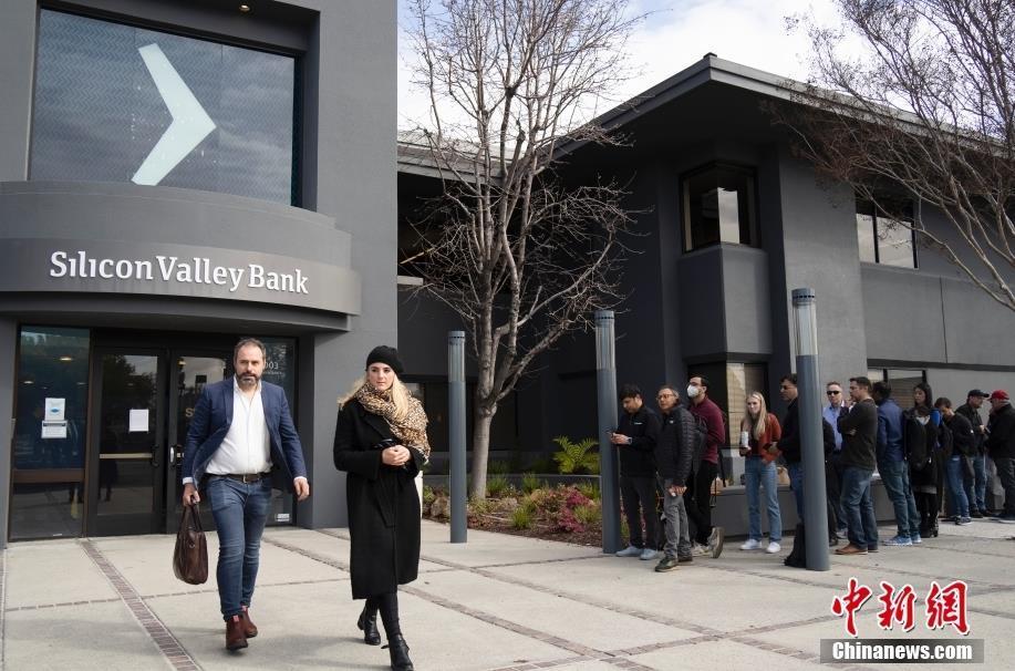 资料图:当地时间3月13日,客户在美国加州圣克拉拉市硅谷银行总部门前排队等候办理业务。中新社记者 刘关关 摄