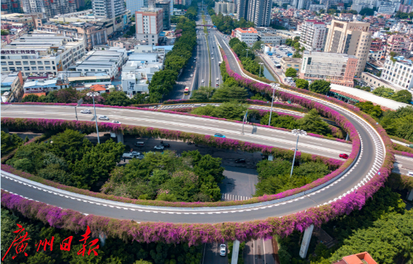 近年来,广州天桥绿化品种以簕杜鹃为主。而基质是植物根系生长的载体,广州利用绿化废弃物,研发配制出了天桥绿化的专用基质,并建立了簕杜鹃资源圃,目前已收集簕杜鹃品种近400种,筛选推广了抗逆性较强、下垂效果好、颜色丰富的16个品种在桥梁上应用,综合运用品种筛选、智能灌溉、花期调控、防寒抗冻等多种技术措施,使如今的广州天桥在不同季节都有不同品种的簕杜鹃开花,基本上达到四季常绿、四季有花。