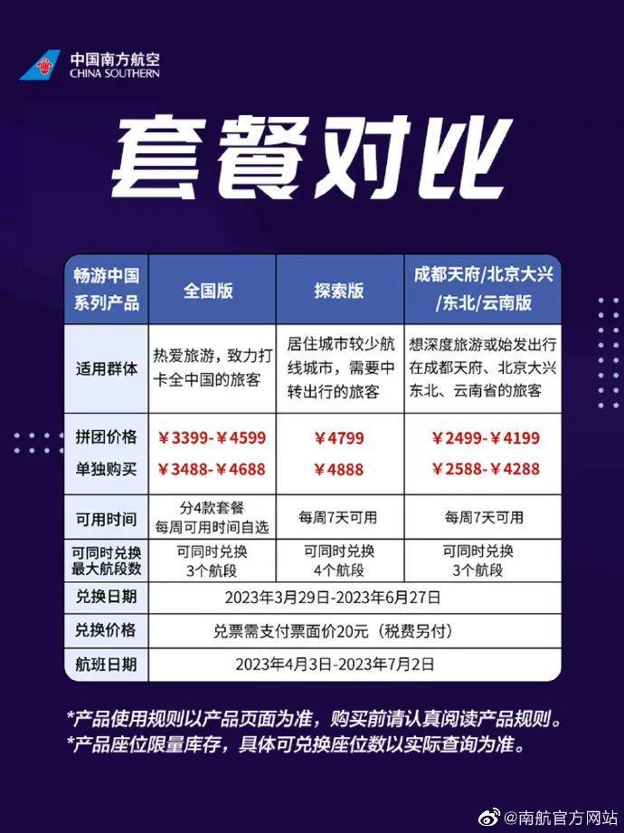 2022年8月,南航也曾推出“畅游中国”产品,全国版价格为2899-4288元不等,随后产品有效期延期至2023年2月。