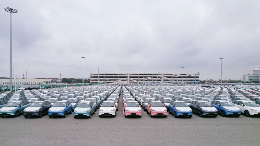 在广州南沙口岸即将出口的国产新能源汽车