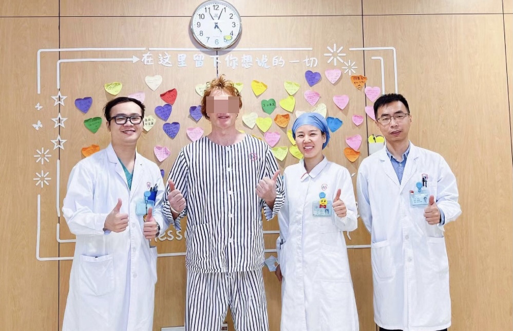 康复出院前,Adam感激不尽,为该院泌尿外科团队竖起大拇指点赞。