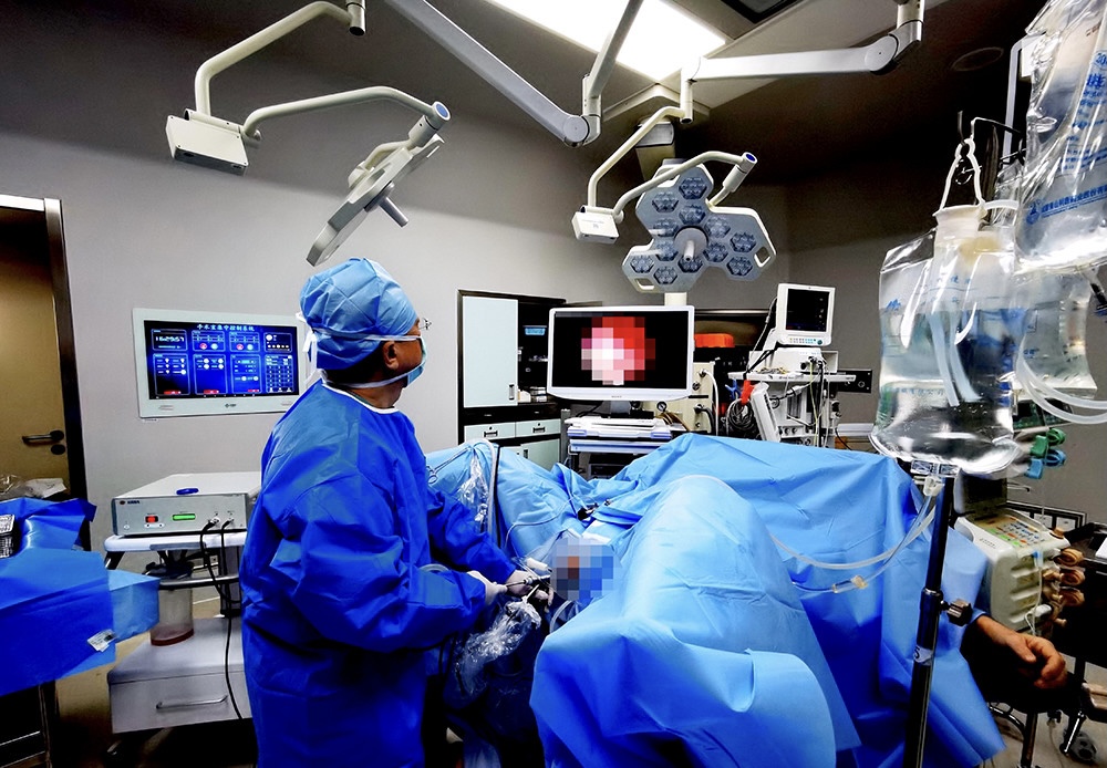 手术中,泌尿外科团队在经尿道前列腺电切的基础上,开展了经尿道“等离子解剖性前列腺剜除术”,完全改变了普通前列腺电切的切割方法,达到将前列腺于包膜内切除,更加符合前列腺解剖手术,具有切除更完整彻底、术后复发率极低、术中出血少等特点。随后,徐乐为Adam使用“大白鲨”进行前列腺组织粉碎术。