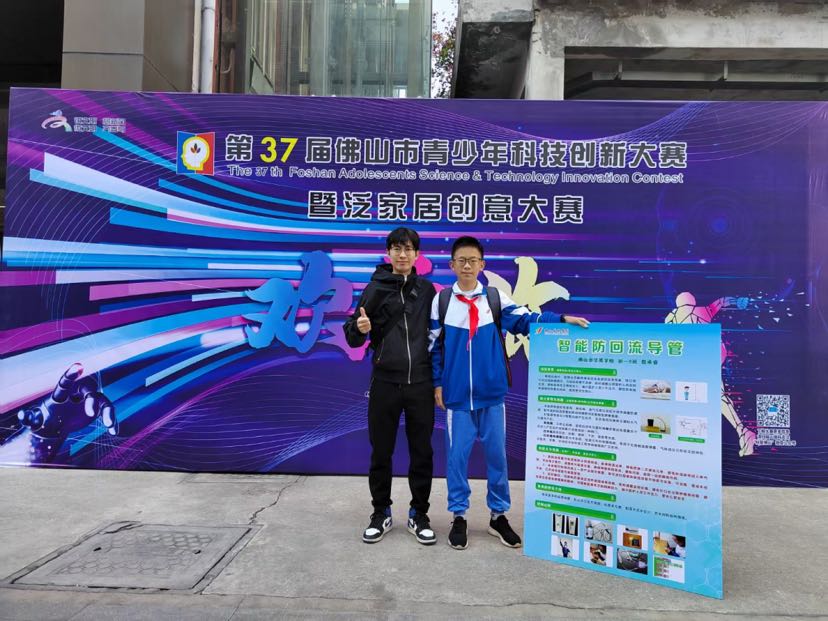 2021年12月,詹承睿参加第37届佛山市青少年科技创新大赛,获得创新成果项目中学组二等奖,获奖发明正是上述的第一代产品。