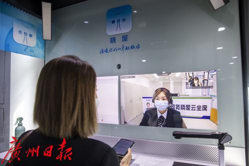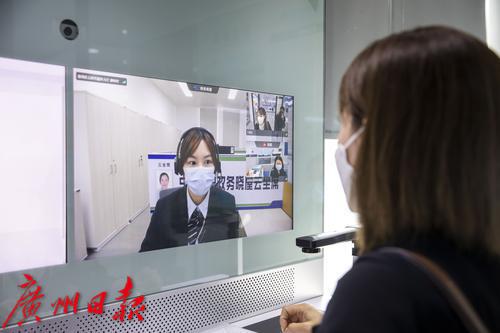 记者现场看到,“智慧政务晓屋”大约有2平方米,里面有两台办事大屏,可以直接连线本市甚至全国的政务服务大厅。兰艳红在“智慧政务晓屋”前等了几分钟,大屏发出提示现有空位,她拿起手机扫码后就进入了政务晓屋,随后锁好门,就可以与远在数十公里外的番禺区政务大厅办事员“面对面”沟通。