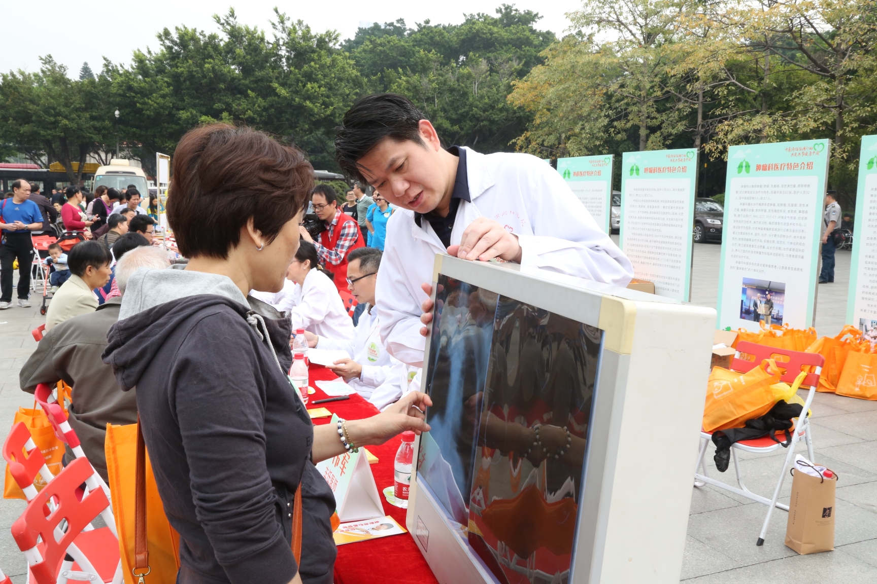广州市胸科医院医学影像科方伟军主任医师为群众解读胸片。