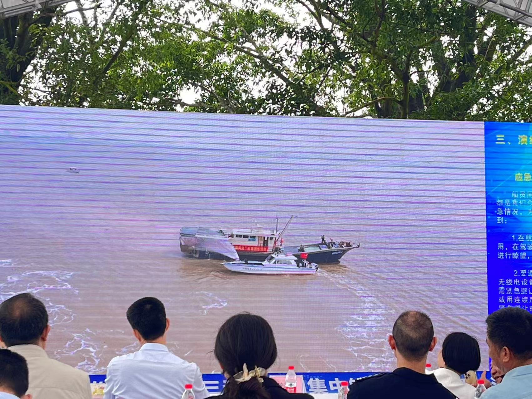 3月23日,龙穴南水道两船对驶相遇,险险避开相撞,在躲避过程中一名船员不慎落水,渔船上失火,12395水上求救专线接到电话后,立即派出海洋救援船只,成功救助“落水船员”、扑灭失火。这是应急演练上的一幕。过程模拟演练了整个过程,海洋综合执法大队接到事故报告后,迅速启动应急预案,派出执法快艇和救援人员赶赴现场开展救援。