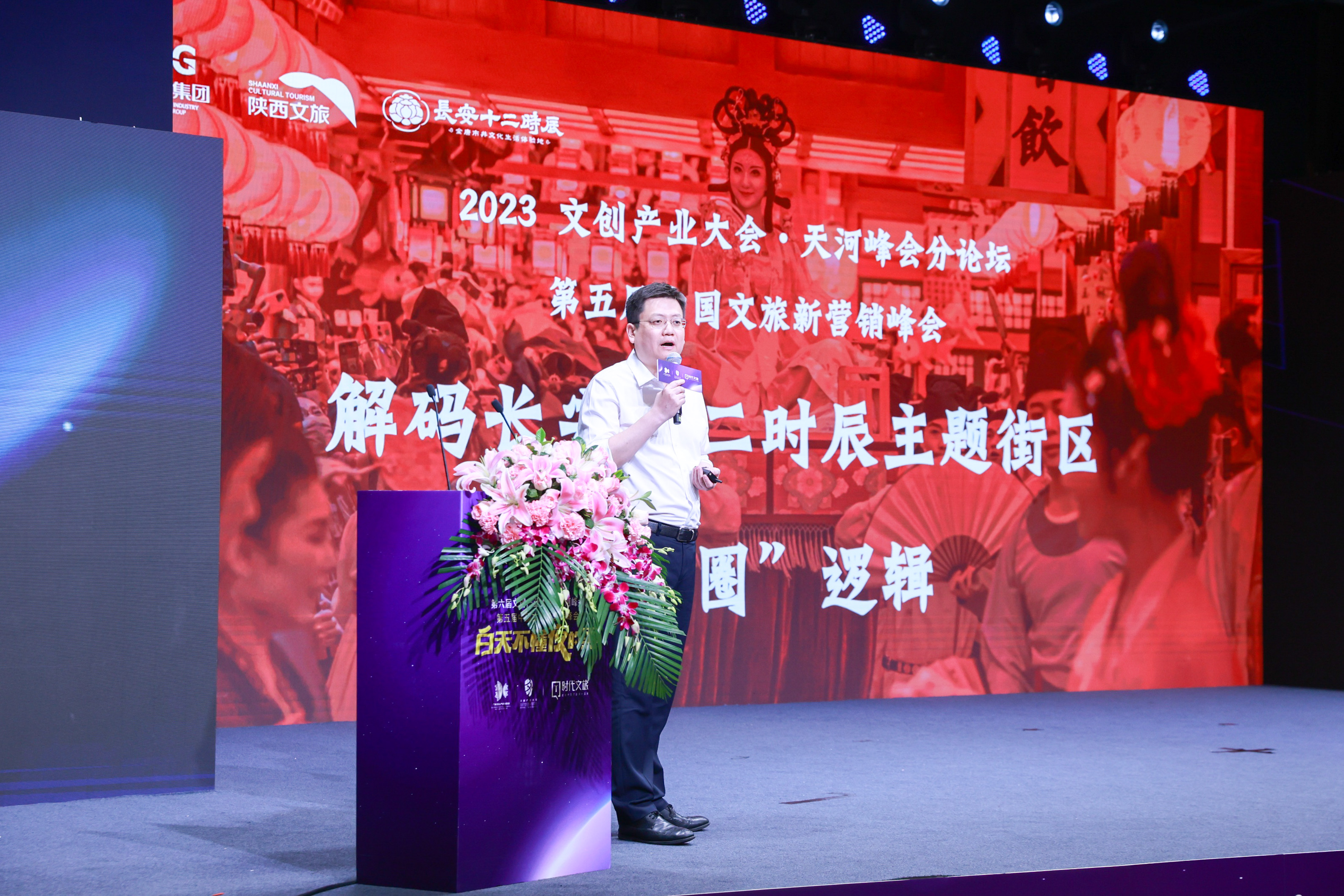 陕文旅董事长、长安十二时辰主题街区主理人邹林丰,也为观众解码长安十二时辰主题街区“出圈”逻辑。他指出,一个好的文旅产品,充分挖掘产品在地文化的丰富内涵,不仅需要好的营销,更需要营销战略,需要营销前置,需要通过创意和内容制造来创造社会化传统文化复兴的全民狂欢。