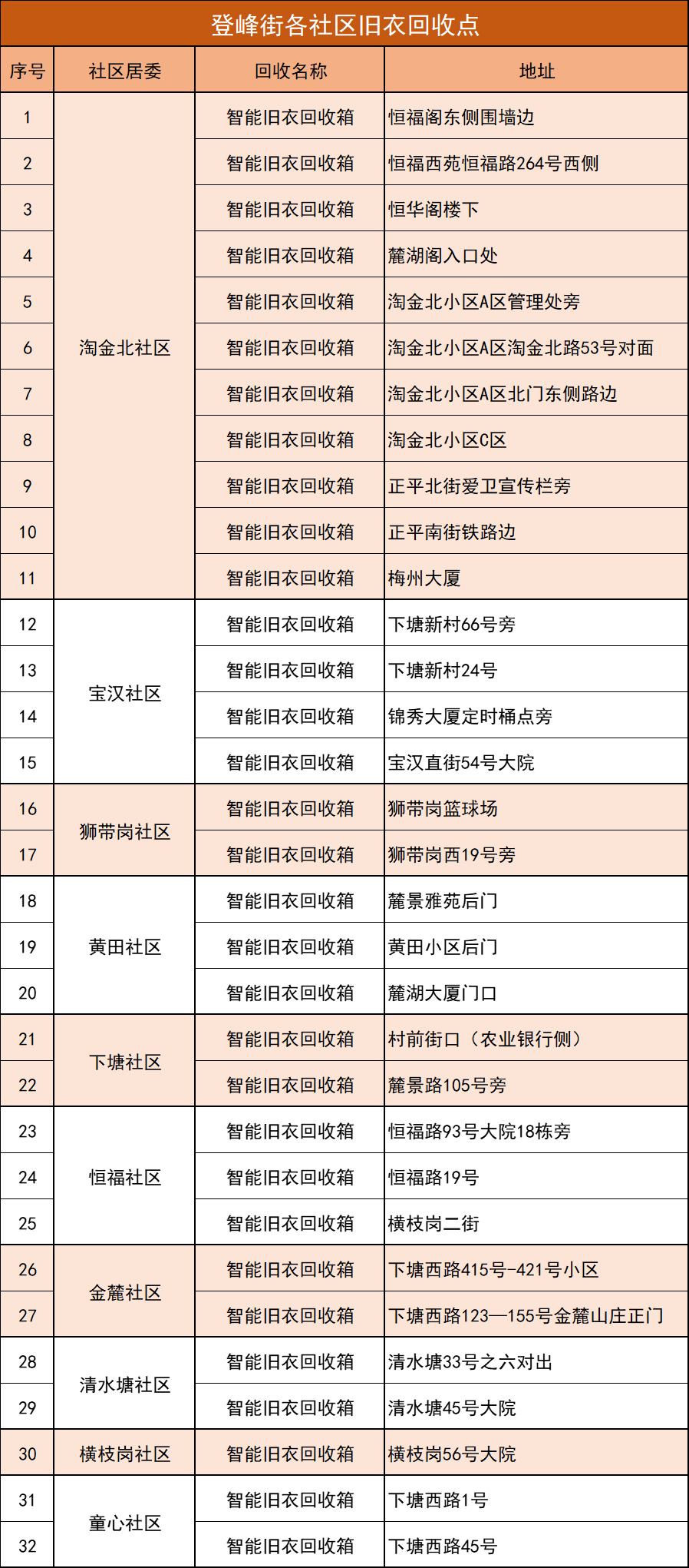 小物品发挥大作用,如果您家中杂物太多,也可以自行把可回收物打包后投放至就近的智能回收箱。据悉,目前登峰街共设有32个智能回收箱,分布在淘金北、宝汉等10个社区,回收箱均为电子设备,各位街坊24小时都可前往进行回收资源投放。