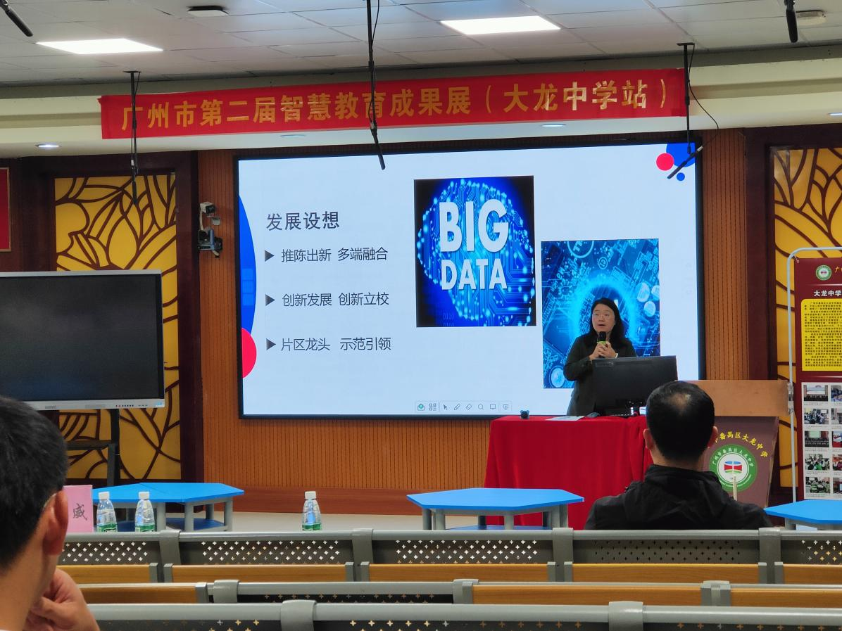 3月24日,广州市第二届智慧教育成果展(大龙中学站)——“学科+技术”的“四有智慧课堂”教学模式的探索活动在番禺区大龙中学举行。广州大学卢建川副教授,番禺区教师发展中心黎耀威副校长、教师发展中心丘志强副部长等专家、领导出席了本次活动。本次活动同时也是大龙中学与贵州结对学校帮扶系列活动之一,毕节市金沙县沙土镇初级中学和毕节市赫章县妈姑中学的老师们在线上观摩研讨。