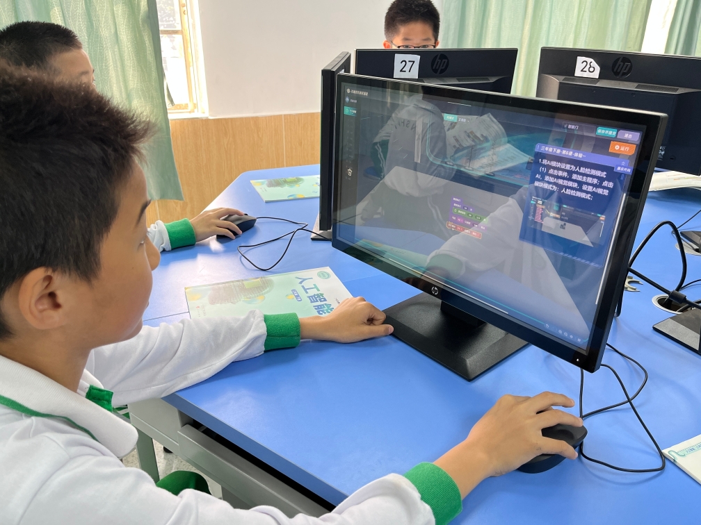 作为广州市中小学人工智能课程实验校,云山小学从三年级起开设人工智能课程,如陈思兴任教的四年级学生,每周都会有一节人工智能课。