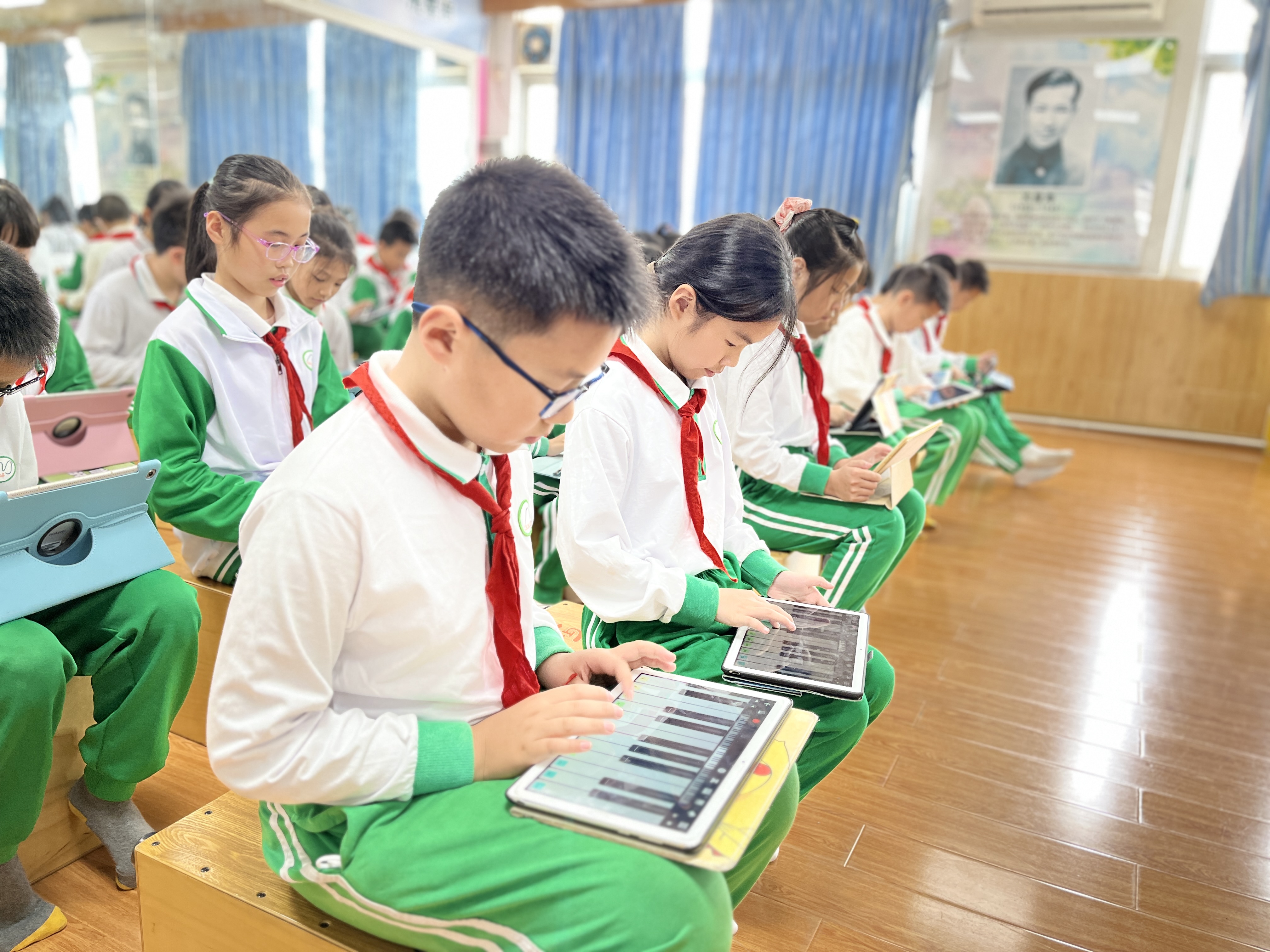 从借助平板更为精准地把握学情,到音乐课上用平板弹琴、编曲,科学课上用平板识别花草,在不断创新智慧课堂教学模式的过程中,师生共同成长,收获知识,发展素质,提升能力。