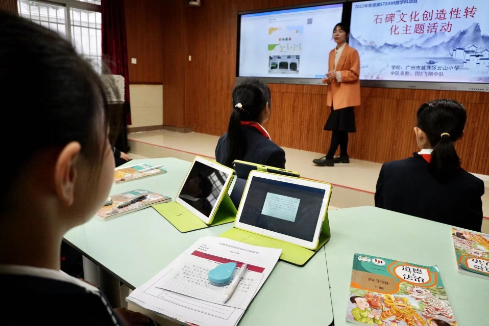 早在90年代初,广州市越秀区云山小学就确定电化教育为办学特色。如今,学校传承和发扬传统的信息化优势,推动教育数字化转型,基于“为智慧与绿色的人生奠基”办学理念,不断探索与创新深度融合信息技术的教学模式和策略。