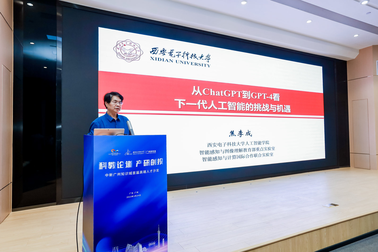 3月24日,中新广州知识城首届“科教论道、产研创投”高端人才沙龙(下称“沙龙”)上,欧洲科学院外籍院士、俄罗斯自然科学院外籍院士、西安电子科技大学计算机科学与技术学部主任、人工智能研究院院长焦李成教授围绕“从ChatGPT到GPT-4看下一代人工智能的挑战与机遇”主题,带来了最新思考。