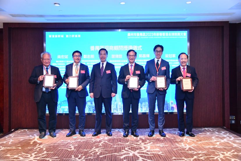 为更好地向全球推介番禺,番禺区面向全球聘请了10名招商顾问,招商大会上,黄彪向他们颁发了聘任牌匾。吴宏斌感谢番禺区聘请他担任招商顾问,他表示将不负所托,向香港工商界传递番禺的“好声音”“讲好故事”,推动香港成为番禺发展的“最佳合伙人”。