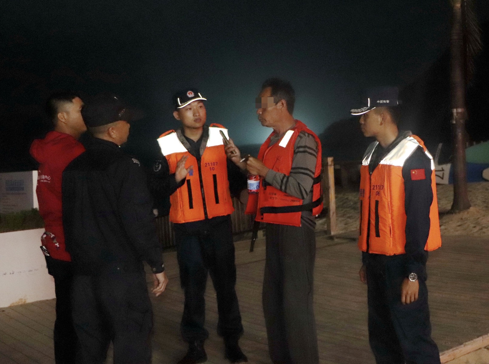 航渡过程中,海警执法员克服夜间海况恶劣和能见度低等不利因素的影响,经过半小时的高速航行,顺利抵达事发海域。海警执法员现场联合驻地海洋综合执法、公安、社区等相关部门工作人员,成功将3人救助至摩托艇。