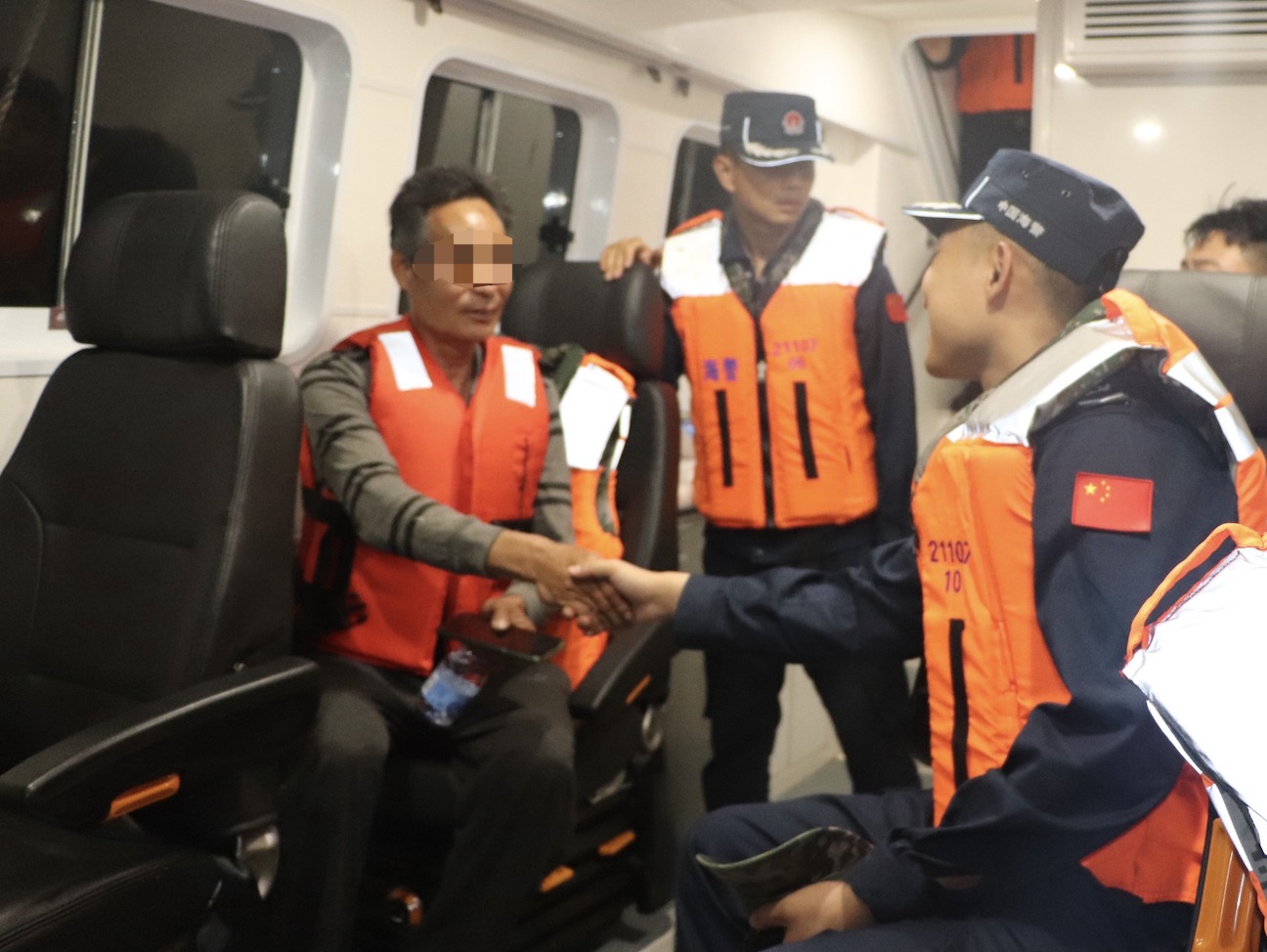 在返回至岸上途中,海警执法员一边安抚遇险渔民情绪,一边了解其身体状况,查看有无受伤,并与相关部门商议搁浅渔船后续处置方案。据悉,获救3名渔民身体健康状况良好。
