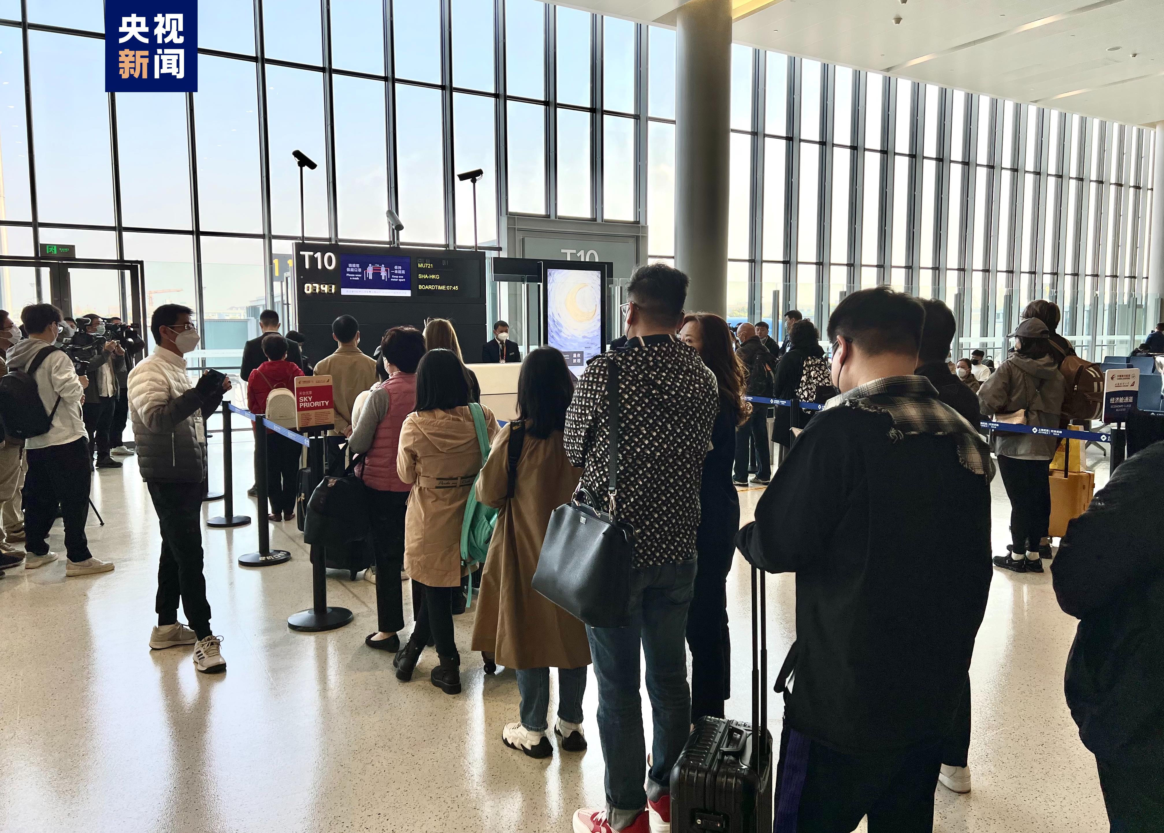26日上午8时许,上海虹桥至香港的MU721航班在办理完毕边检出境手续后缓缓滑入跑道,起飞冲向蓝天。上海虹桥国际机场暂停三年的国际及港澳台地区进出港航班业务“重启”。