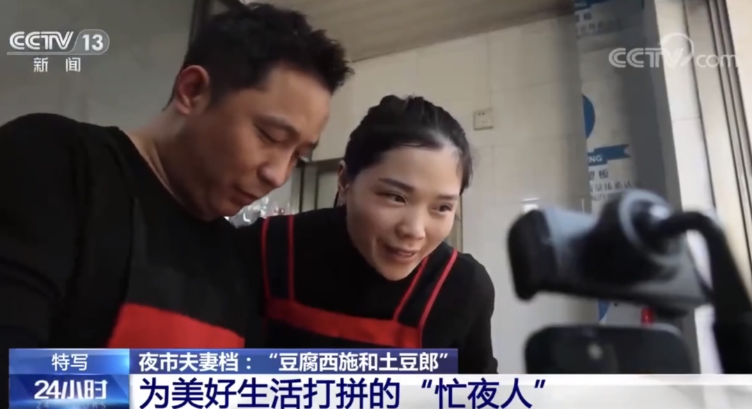 据央视新闻3月19日报道,“95后”夫妻范丹丹和赵庆书,在浙江义乌的青口夜市经营小吃摊。夫妻俩边摆摊边直播,因生意火爆,每天500斤土豆和250斤豆腐甚至不够卖。凌晨,人群散去,小两口高兴地盘算销售额:“大概9000块左右,一天就赚到了,好有成就感。”