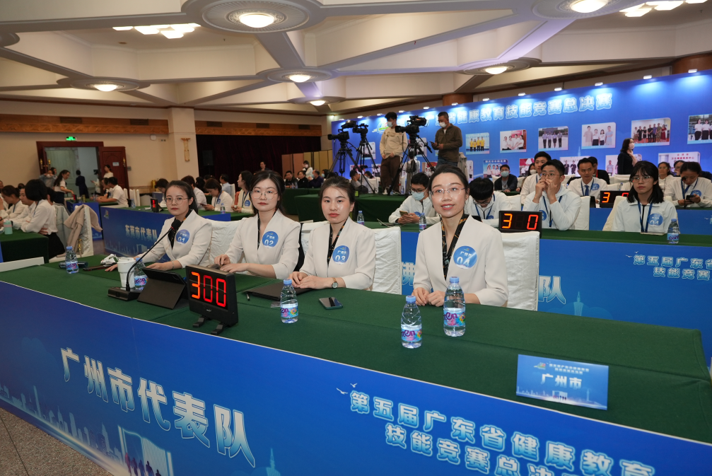 (广州队队长、荔湾选手方桦与全队成员在省健教技能竞赛现场)