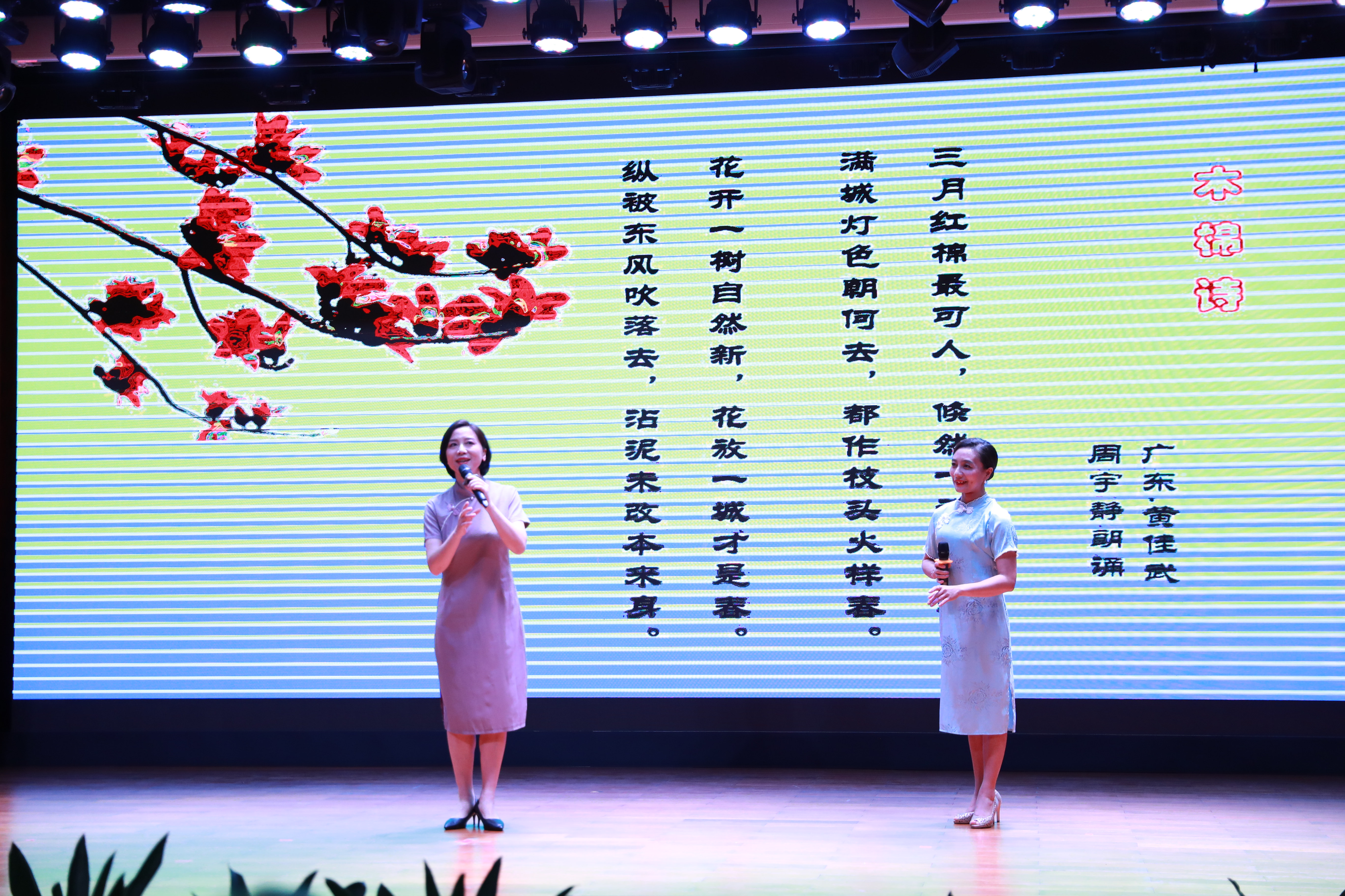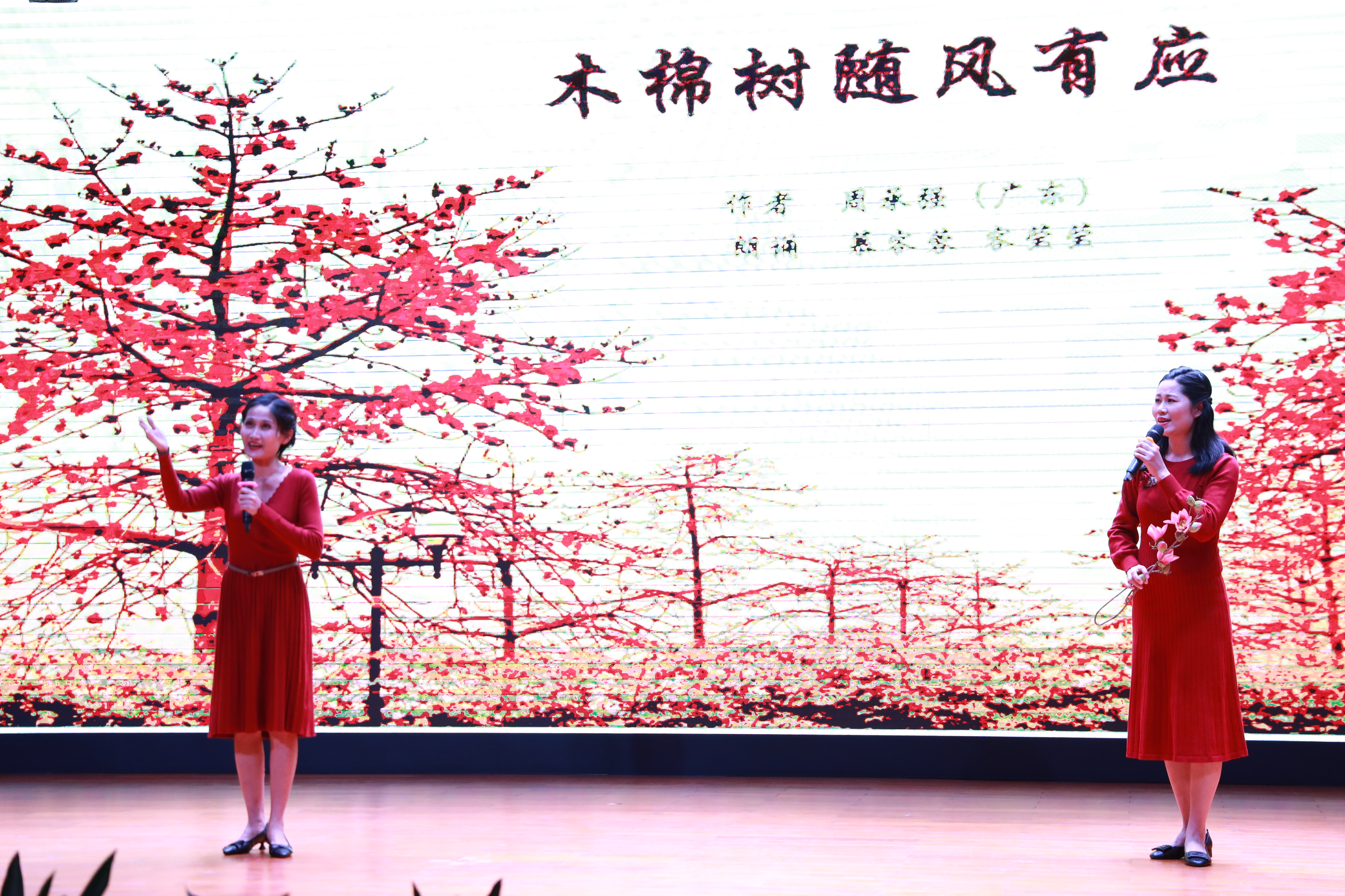 活动现场,广东省朗诵协会的朗诵家先后朗诵了以史的《英雄之花》、刘强的《瞻仰海珠广场广州解放纪念碑》、张自军的《羊城木棉歌二首》、苏俊的《江城子 木棉》、周承强的《木棉树随风有应》、贺永粹的《三姝媚 木棉花开》、赵秀敏的《蝶恋花》等诗词、现代诗作品,用美好的声音弘扬岭南文化,讲述城市生态之美,用真挚的情感倾诉红棉的英雄故事,奏响新时代。此外,由广州馨语旗袍美学艺术团表演的《诗意旗袍·木棉红》,带领观众领略木棉的独特风姿。