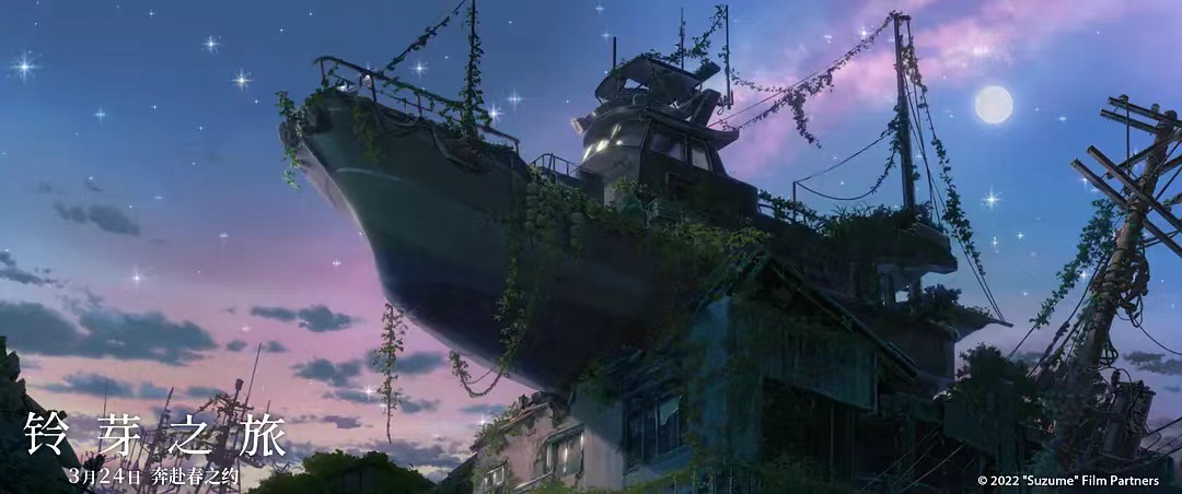 《铃芽之旅》讲述了17岁的少女铃芽与男孩“草太”所经历的一场生命之旅。片中,主人公从九州宫崎县到儿时故乡的宫城县,一路结识陌生人,经历一场场冒险。