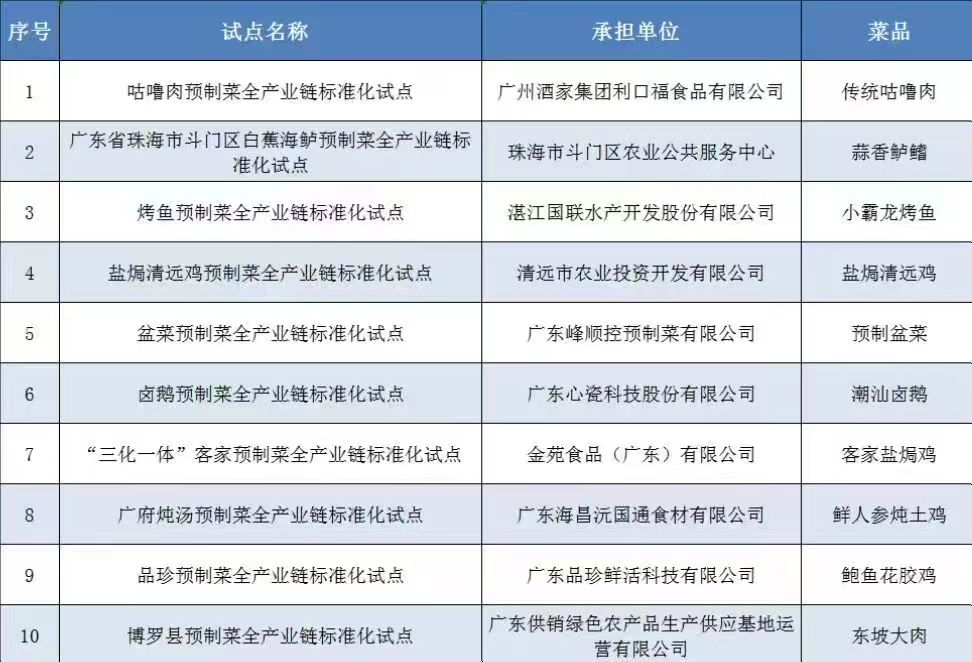 链接:预制菜全产业链标准化试点遴选结果