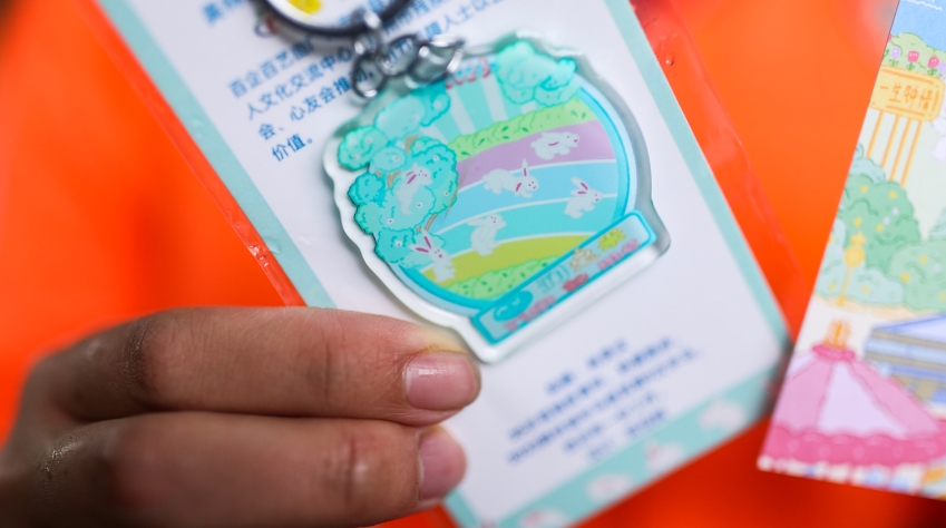 图说:癸汶展示自己参与创作的文创衍生品