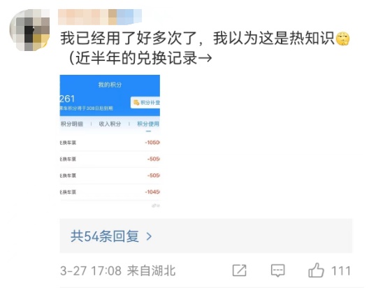 提交订单后,选择“积分支付”即可兑换车票,积分用于兑换车票时,100积分相当于1元人民币,如果你账户中的积分足以兑换一张车票的价格,那就可以免费乘车了。