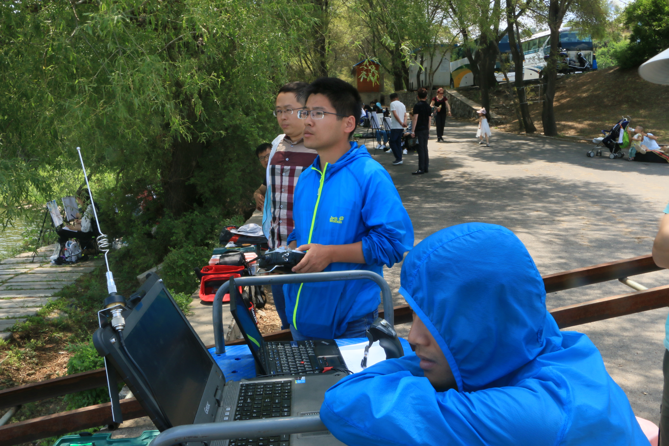熊俊峰在湖泊中做无人艇实验
