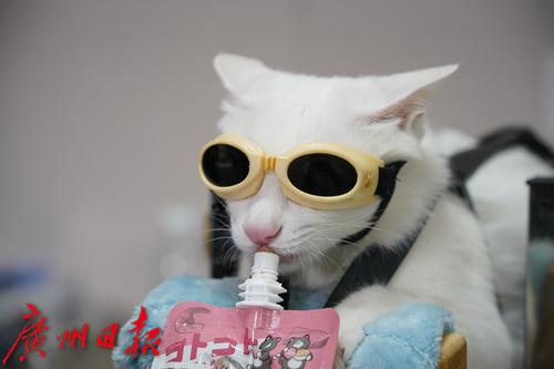 3月17日,猫星人在爱诺百思动物医院接受激光治疗。