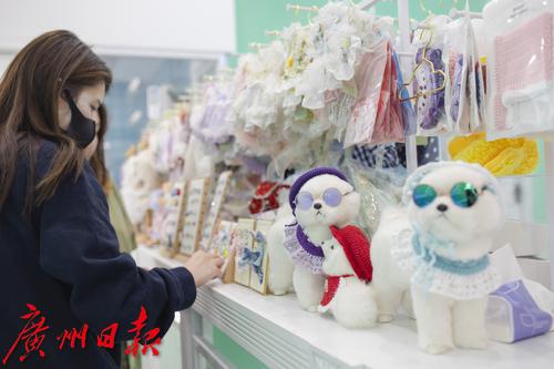 海珠区觅伴宠物店内,主人正在挑选着宠物服饰。