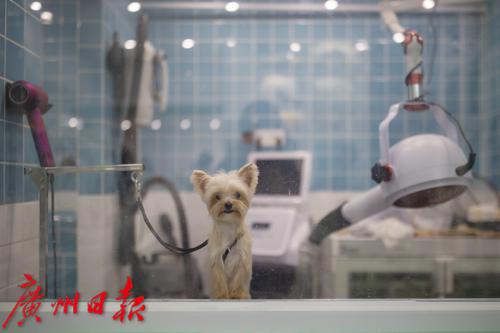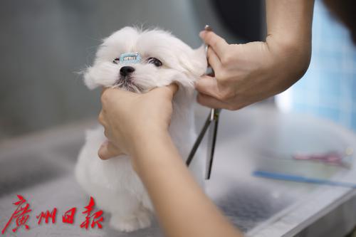和李小姐同样认为狗狗能起到陪伴作用的还有觅伴宠物店的陈店长,她在广州市海珠区经营着一家以约克夏、马尔济斯、西施犬为主的高端宠物售卖店。她认为在城市工作的年轻人会自然而然地将自己的情感寄托在萌宠身上。觅伴宠物店里一只血统纯正、面相姣好且打过疫苗的马尔济斯犬可以卖到15万元的价格,深受网红、主播等年轻的小姐姐的喜爱。宠物店除了售卖狗狗,还提供宠物的美容洗护服务,例如给狗狗敷面膜、涂护手霜。“宠物美容洗护其实是一个蛮大的市场,但是它的投入成本也很高,也不是什么人都能来抢生意的,对我们店来说,我们更多的是出售一种能够满足高端市场的洗护服务。”陈店长说。店长表示,在正常预约的情况下,店里一天需要接待20只前来洗护的狗狗或猫咪,大概需要七八个员工帮忙。“其实我们每天要拒绝蛮多客户的,因为基本排不上。”店长说。