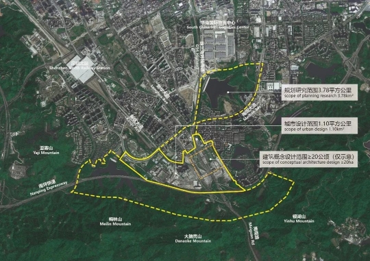 此次国际咨询范围共包含三个层次,即规划研究范围、城市设计范围和枢纽核心区建筑概念设计范围。其中,规划研究范围为东至银湖山,西至玉龙路,南至梅林山、银湖山,北至民乐路,总面积为3.78平方公里,并考虑与深圳北站、华南国际物流中心、民乐村、梅林山、银湖山、民治水库等周边片区的统筹协调关系;城市设计范围:东至星河丹堤和丰泽湖山庄边界,西至牛咀水库,南至南坪快速,北至龙华大道、新区大道、金龙路,面积为1.10平方公里;枢纽核心区建筑概念设计范围:由参赛机构根据城市设计方案划定,要求包含4条轨道线换乘站点且范围不小于20公顷。