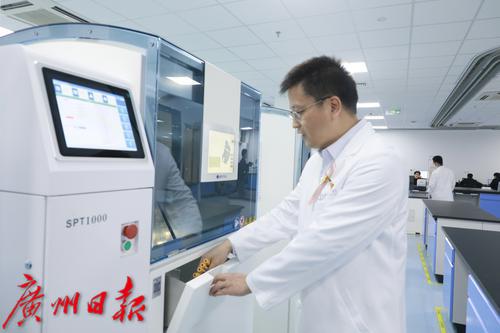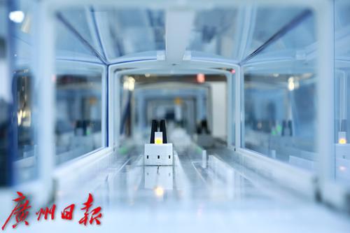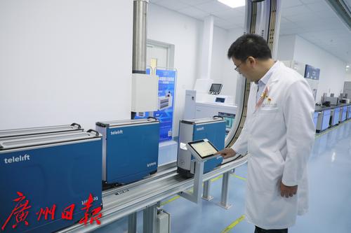 南沙院区医学检验科执行主任徐鸿绪演示智慧一体化物流系统,该系统用轨道运送检验样本,大大提高运输和检验效率