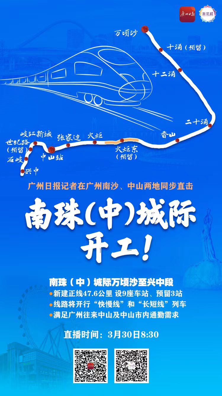 今天(3月30日)上午,南沙至珠海(中山)城际万顷沙至兴中段(下称“南珠(中)城际万顷沙至兴中段”)项目工程,在广州段十涌站和中山段香山站选址,同步举办开工活动。随着动工现场指挥一声令下,南珠(中)城际万顷沙至兴中段正式开工建设。