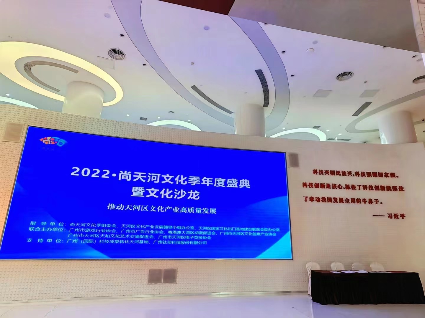 3月29日下午,由尚天河文化季组委会、天河区文化产业发展领导小组办公室、天河区国家文化出口基地建设联席会议办公室指导的2022·尚天河文化季年度盛典暨尚天河文化沙龙在广州(国际)科技成果转化天河基地成功举办。