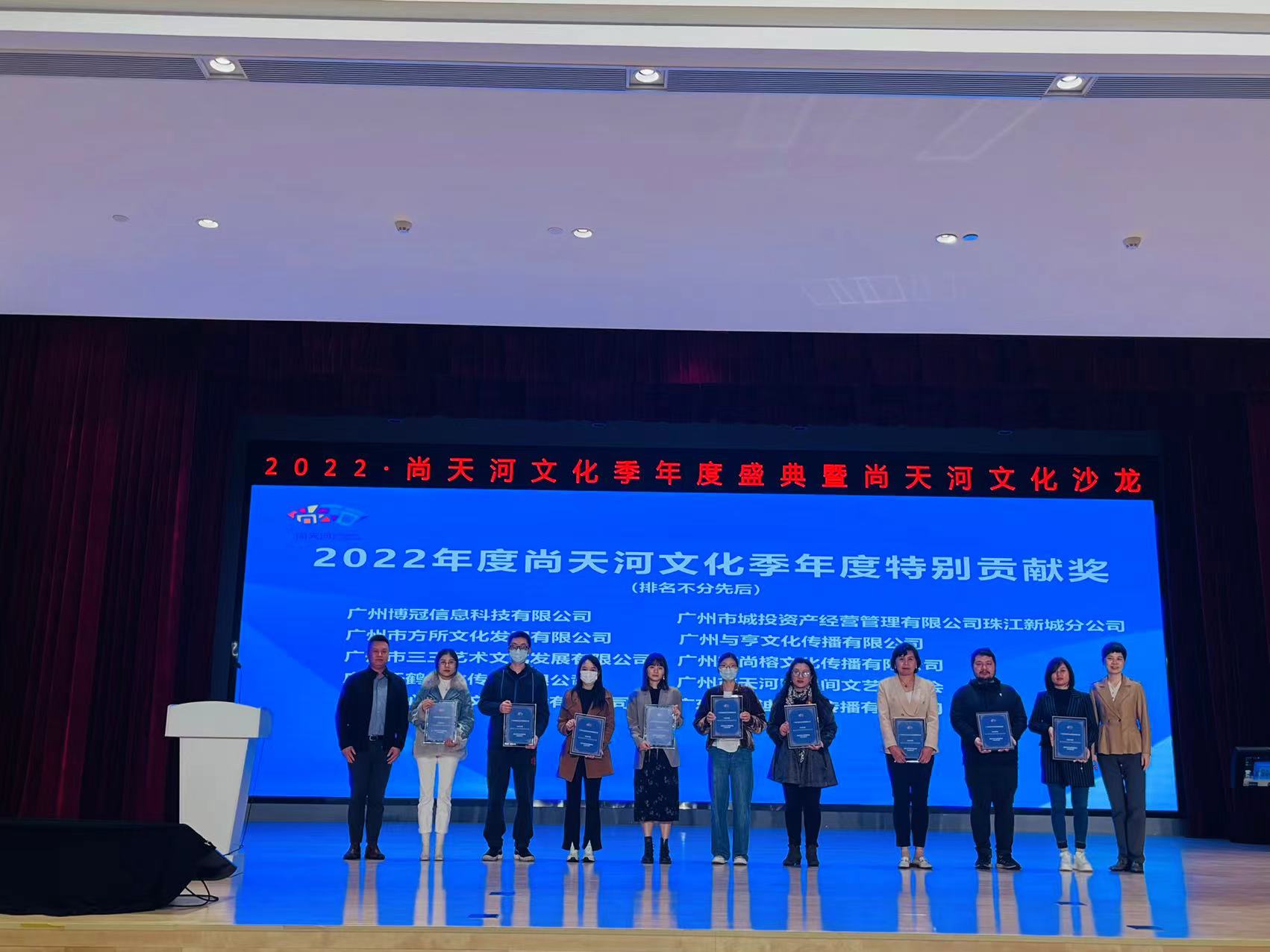 本次活动以“推动天河区文化产业高质量发展”为主题,包含了颁发“2022年度尚天河文化季年度特别贡献奖”、《国家文化出口重点企业和重点项目》政策宣讲、解读《天河区推动经济高质量发展的若干政策意见》文化产业类扶持政策等环节。