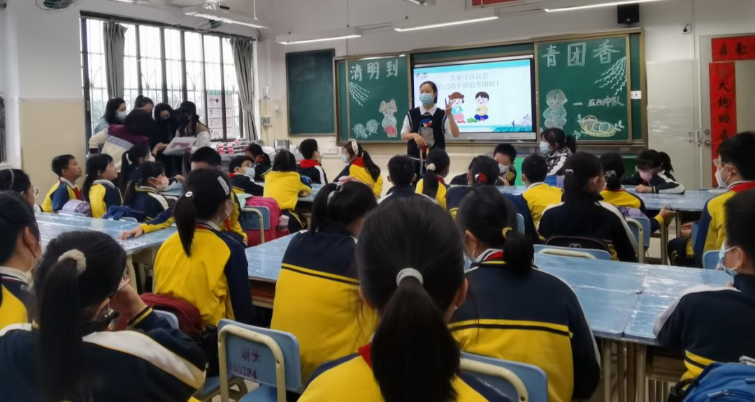 清明节,又称踏青节、行清节等,节期在仲春与暮春之交。在这一天,人们有扫墓祭祖、做青团、踏青等习俗。在清明节到来之际,为传承中医药传统文化,弘扬中华民族文化内涵,3月28日,越秀区朝天小学五年级开展了一场特别的中医药研学活动,同学们动手做青团、做艾条、学艾灸,既掌握了有关艾草的中医药知识,又在动手实践中感受到劳动的乐趣。