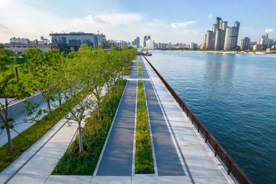 规划提出,让滨水回归生活,营造高质量的城市公共空间。兼顾市民的亲水游玩需求和商业消费需求,商业服务设施临公园绿地的一侧零退界,实现商业服务功能与开敞空间的良好互动,并鼓励向公园绿地设置人行出入口。