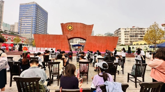 2023年3月19日,“传承英雄精神,汇聚强国力量”国防教育活动在广州起义烈士陵园展演,多校学子踊跃参与。时空交汇,英雄树下精神永续。