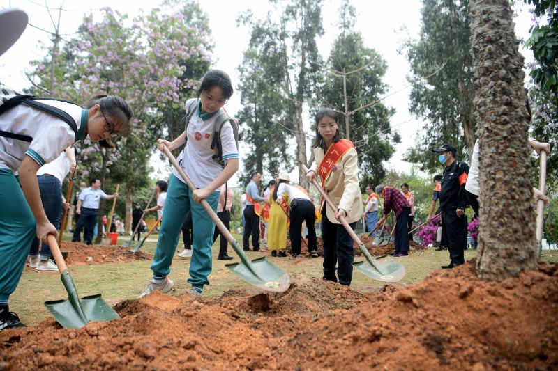 3月12日,“英雄花开 童向未来”广州全市儿童义务植树活动在广州市儿童公园举办。