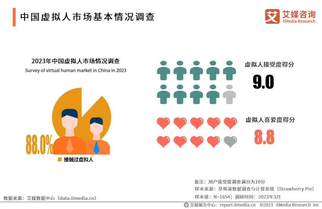 艾媒咨询分析师认为,虚拟人的应用已逐渐突破次元壁,虚拟和现实之间的相互交织,为市场开辟了一块属于虚拟生态的空间,虚拟文化也开始被大众接受。