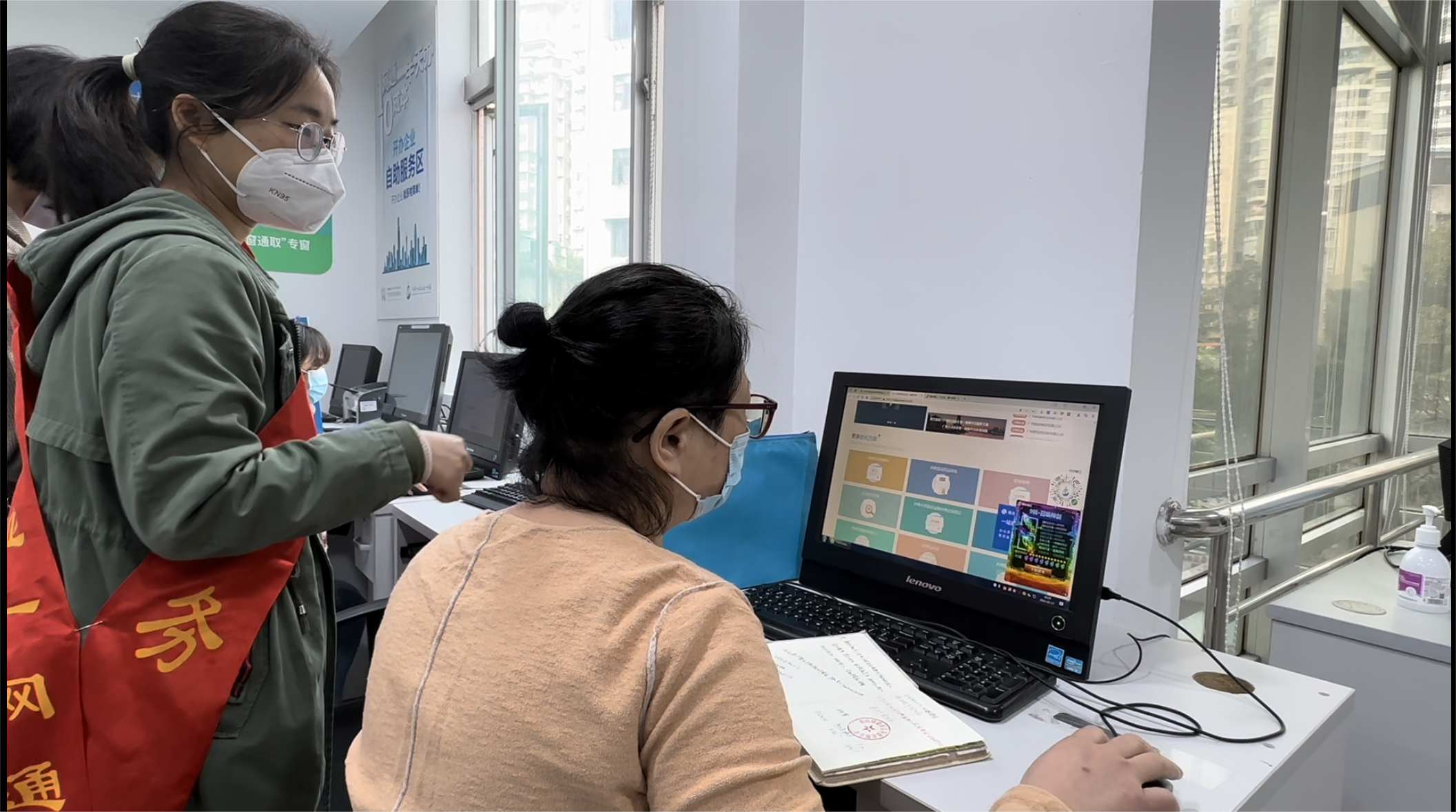 自助区内导办员对企业办理人员进行指引