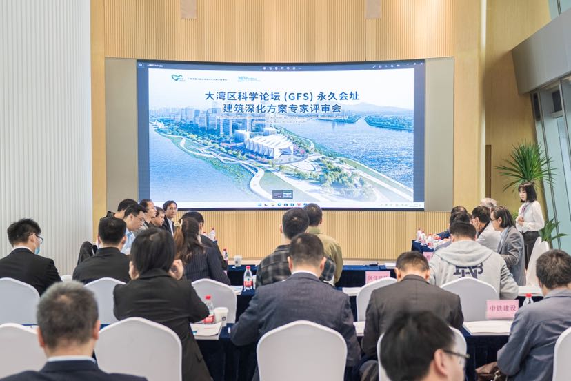 评审会上,项目设计单位就大湾区科学论坛永久会址建筑方案深化设计工作进行介绍,内容涵盖建筑、结构、机电、幕墙、人防、消防、绿色建筑等专项设计。
