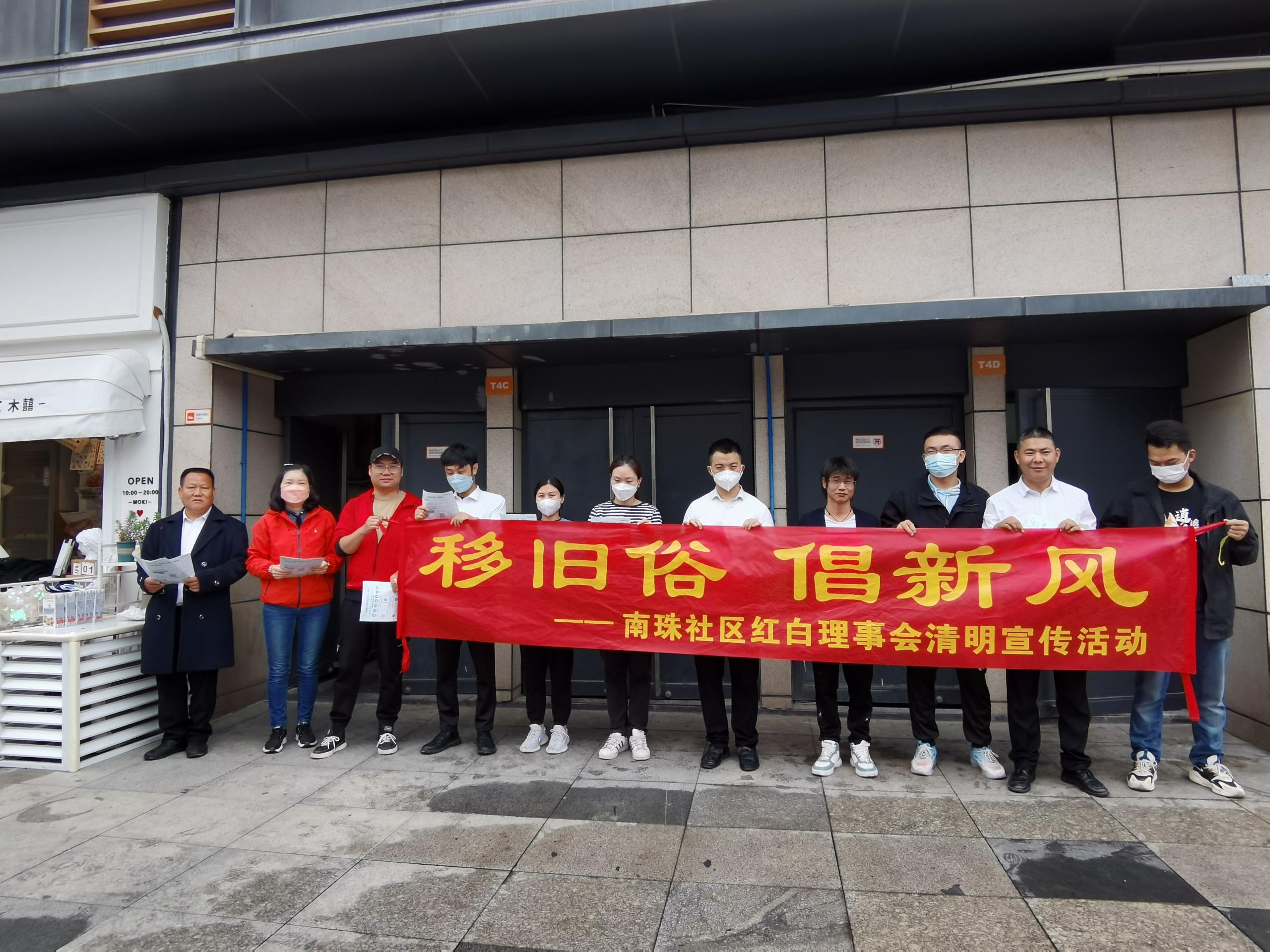 4月2日上午,广州市白云区新市街道汇侨北社区举行社区红白理事会清明宣传活动,该社区红白理事会成员、殡葬信息联络员积极向社区居民派发宣传单张,宣传不烧纸质祭品、不燃放鞭炮等安全祭扫政策,倡导居民文明祭扫、鲜花祭扫。