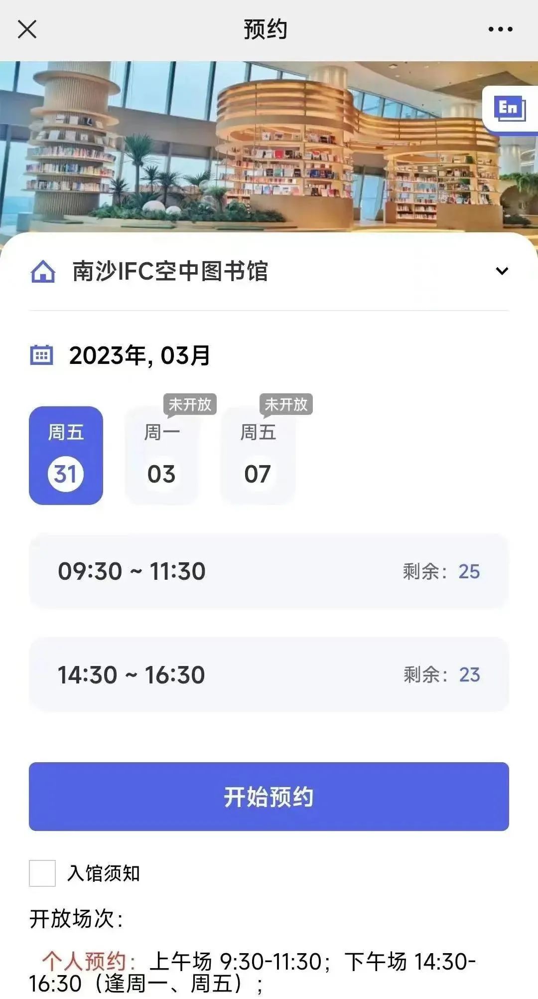 南沙IFC空中图书馆从3月29日至8月31日为试运行阶段,提供个人和团体两种形式的预约组团体验,建议提前三天预约。