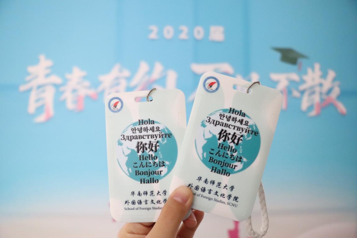 外国语言文化学院为2020届毕业校友精心定制了学位服、印制多国语言的专属纪念卡套、拍照签名墙,昔日陪伴学生成长的老师们赶来和校友合影留念,抒写情谊篇章。