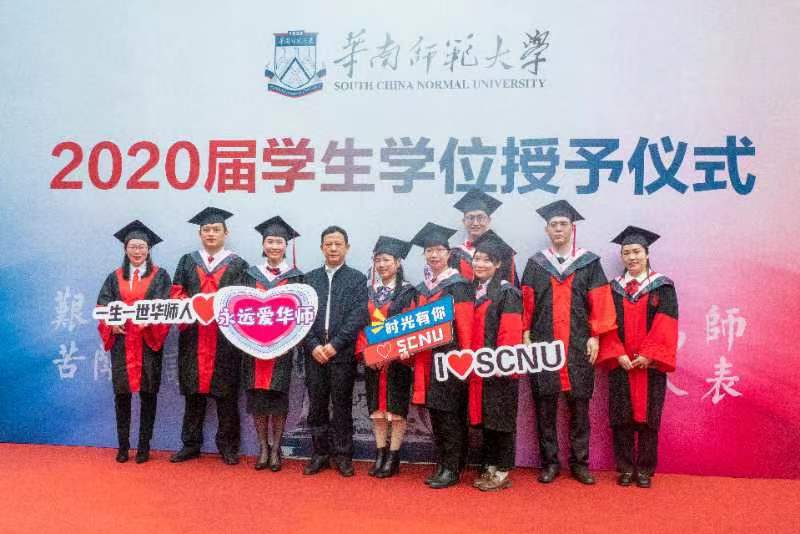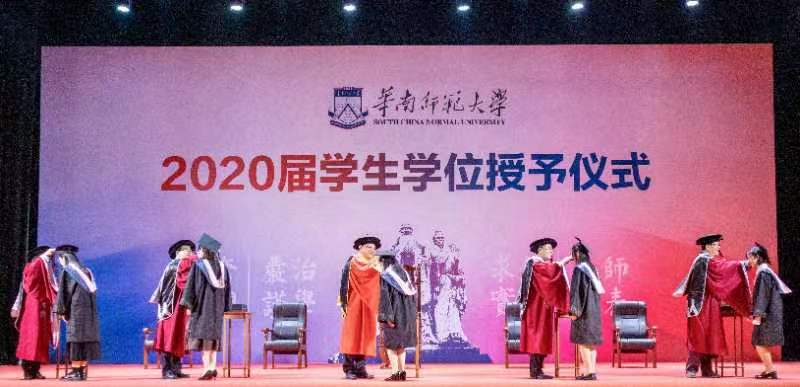 当天,学位授予仪式采取流动拨穗的方式进行。现场,华师校长王恩科、学院主礼教授为三千多名2020届毕业生逐一拨穗,合影留念。扶苏拔穗,短短数秒,历经三年,终于抵达。